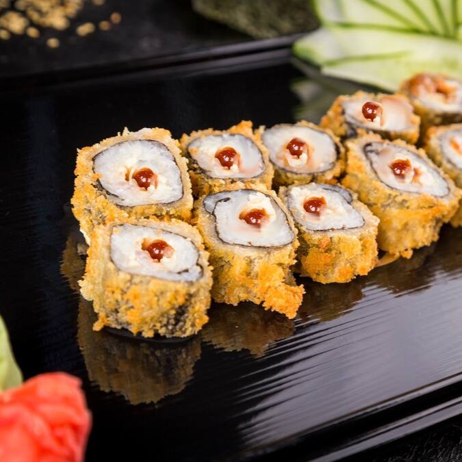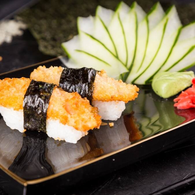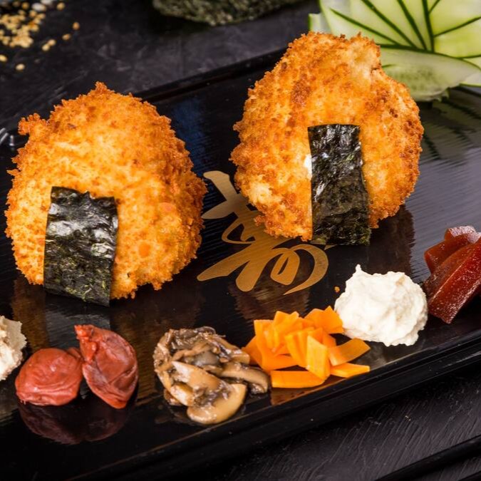 Tradicional Bolinho de Shari (Arroz japonês temperado com Molho Su) empanado em Panko e frito por imersão. Com recheio a sua escolha. Acompanha Nori (alga) à parte para chegar crocante e nossos molhos de sua preferência.