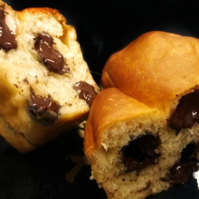 Bolo com massa de Panetone Vegano, recheado com pepitas de Cacau Black (Oreo é feito desse chocolate). Chega quentinho para você.