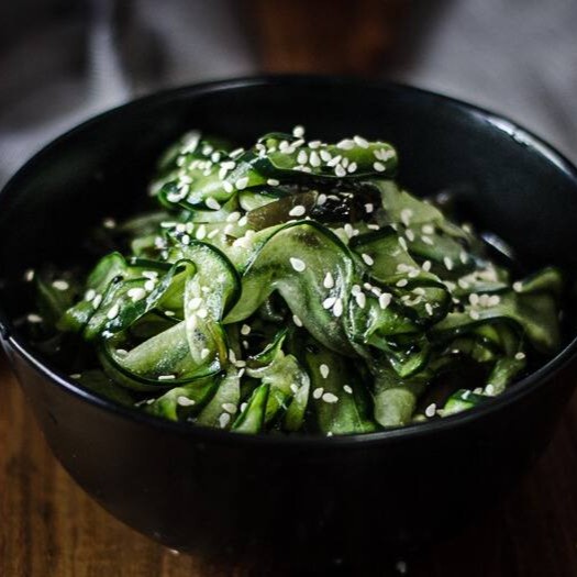 Delicioso Pepino Japones em conserva de molho Su (agri-doce) com Mix de Gergelim Preto e Branco e filetes de Nori (alga).