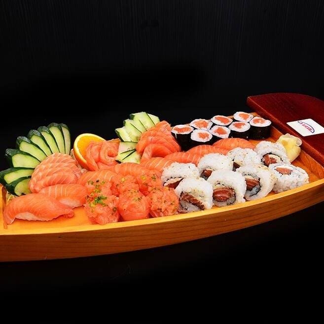 15 sashimi, 12 filadélfia, 8 hossomaki de salmão ,8 niguiri de salmão,