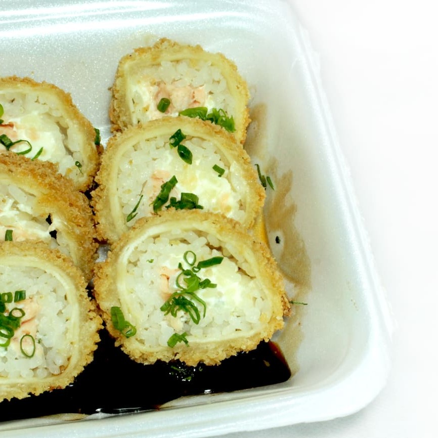 6 unidades. Salmão com cebolinha e cream cheese e kanni.