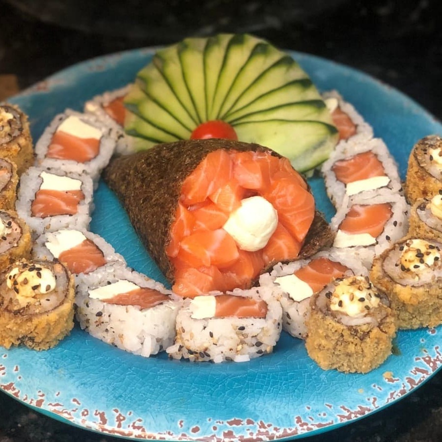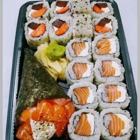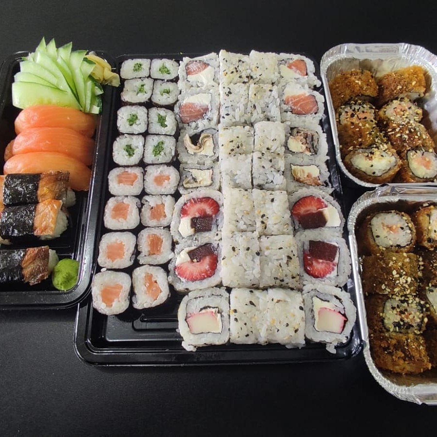 8und hossomaki de pepino 4und hossomaki de kani 2und niguiri skin 2und uramaki filadelfia 2und uramaki skin 2und uramaki romeu e julieta