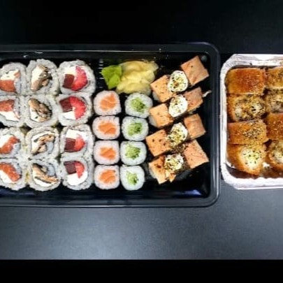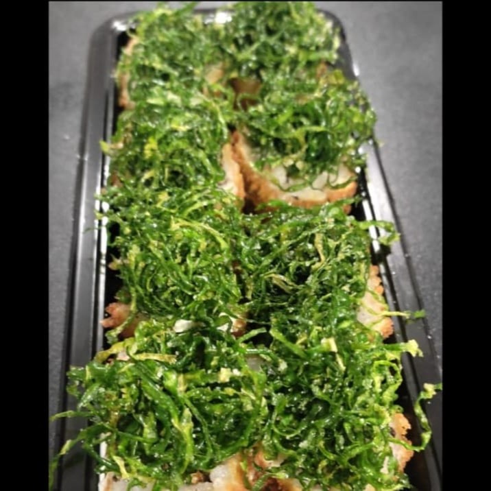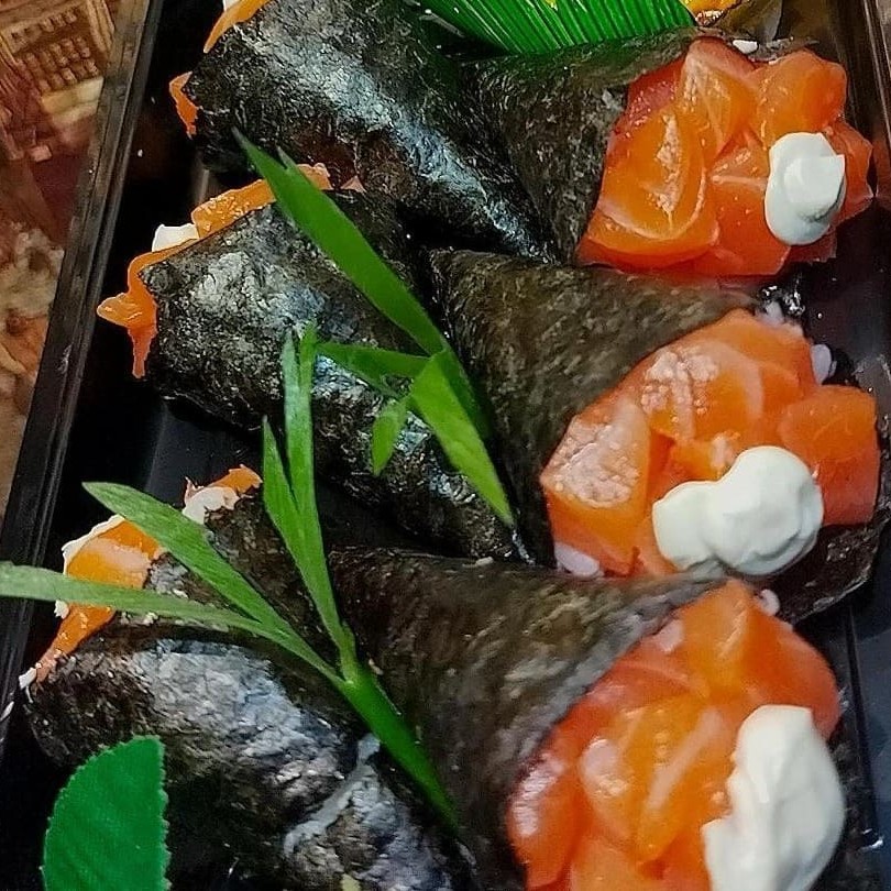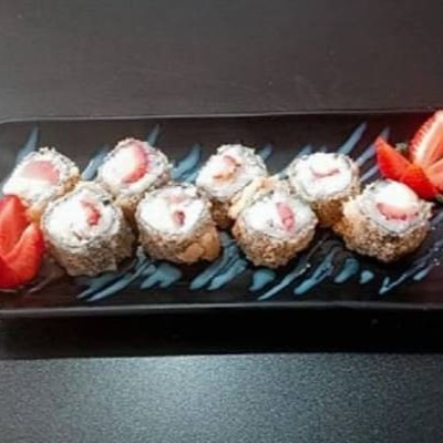 6un Niguiri crispy de couve 4un Gunka com geleia de pimenta 8un Hossomaki de salmão 4un Uramaki Filadelfia