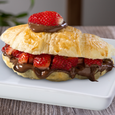 Escolha o tamanho do Croissant (pequeno ou médio), recheado com Chocolate ao leite Nestlé com um toque de chocolate branco