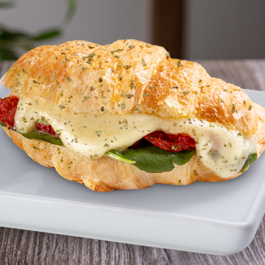 Croissant tamanho Médio recheado com tomate seco, queijo muçarela, rúcula e orégano