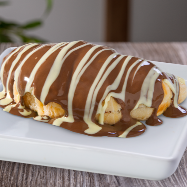 Escolha o tamanho do Croissant (pequeno ou médio), recheado com Chocolate ao leite Nestlé com um toque de chocolate branco e coberto com nozes