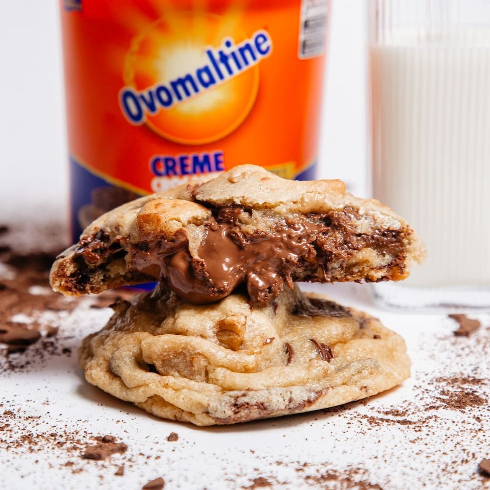 Cookie de Ovomaltine com Nozes Macio por dentro, levemente crocante por fora, feito com chocolate meio amargo e pedacinhos de nozes para um sabor irresistível! Perfeito para qualquer momento do Dia. ️ Contém glúten, leite, ovos e nozes. Pode conter traços de amendoim e outros oleaginosos.
