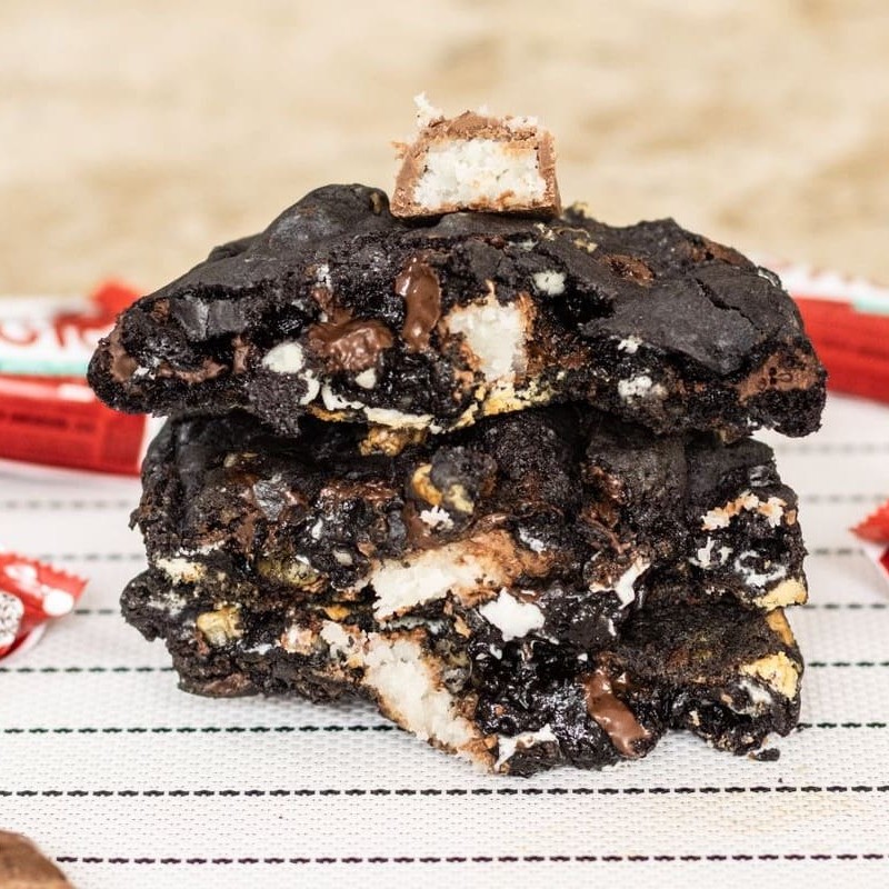 Cookie de Kinder Bueno Macio por dentro, levemente crocante por fora, feito com chocolate meio amargo, pedacinhos de nozes e um delicioso recheio cremoso de Kinder Bueno para um sabor irresistível! Perfeito para qualquer momento do Dia. ️Contém glúten, leite, ovos e nozes. Pode conter traços de amendoim e outros oleaginosos.