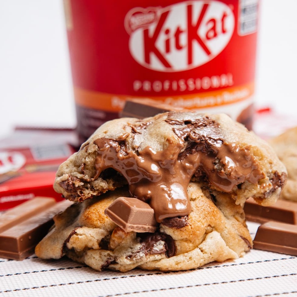 Cookie de Kitkat com Nozes Macio por dentro, levemente crocante por fora, feito com chocolate meio amargo e pedacinhos de nozes para um sabor irresistível! Perfeito para qualquer momento do Dia. ️ Contém glúten, leite, ovos e nozes. Pode conter traços de amendoim e outros oleaginosos.
