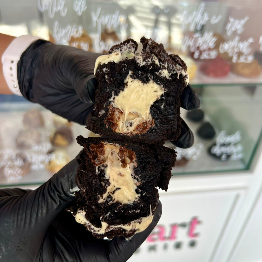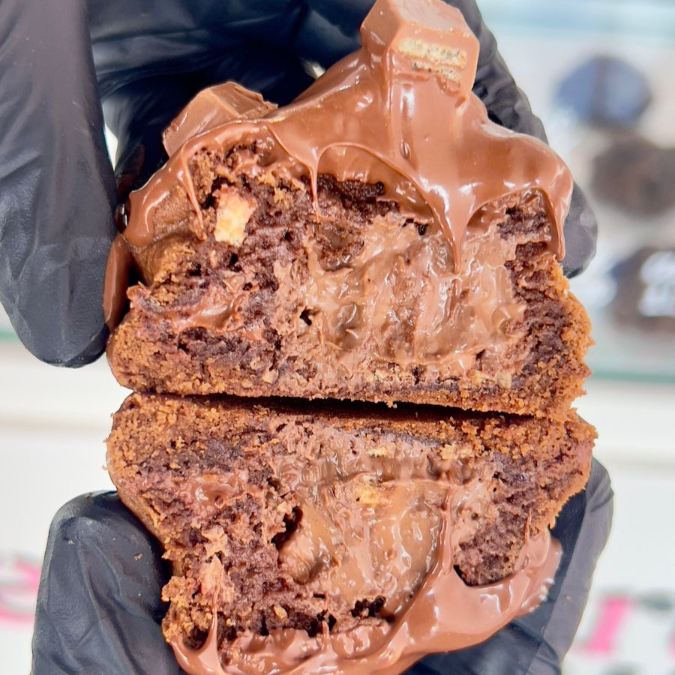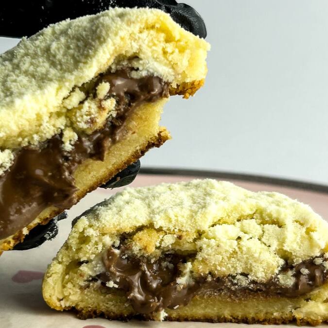 A massa é delicadamente macia e amanteigada, trazendo o sabor envolvente do leite Ninho em cada mordida. No coração do cookie, você encontrará um recheio generoso de Nutella que derrete na boca, proporcionando uma explosão de chocolate aveludado e doce que vai encantar seu paladar.