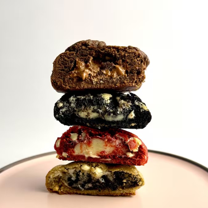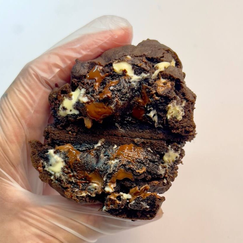 Nosso cookie tradicional de massa de cacau é um verdadeiro espetáculo de sabores: triplo chocolate com pedaços generosos de chocolate branco, ao leite e meio amargo. Crocante por fora, macio por dentro… impossível resistir!