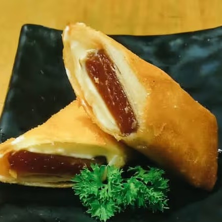 Rolinho crocante, recheado com cream cheese e goiabada.