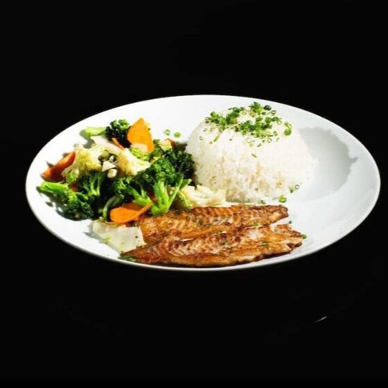 Tilápia grelhada e legumes na manteiga, acompanha Gohan