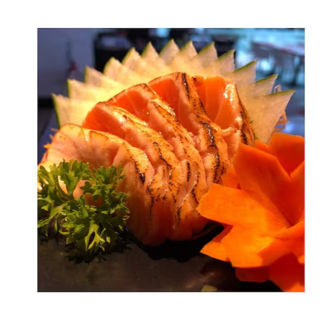 6 sashimi de salmão selado, 2 jow com cream creese e sweet chili (sem arroz), 8 uramaki filadélfia especial selado com sweet chili, 8 uramaki filadélfia, 4 ichigo.