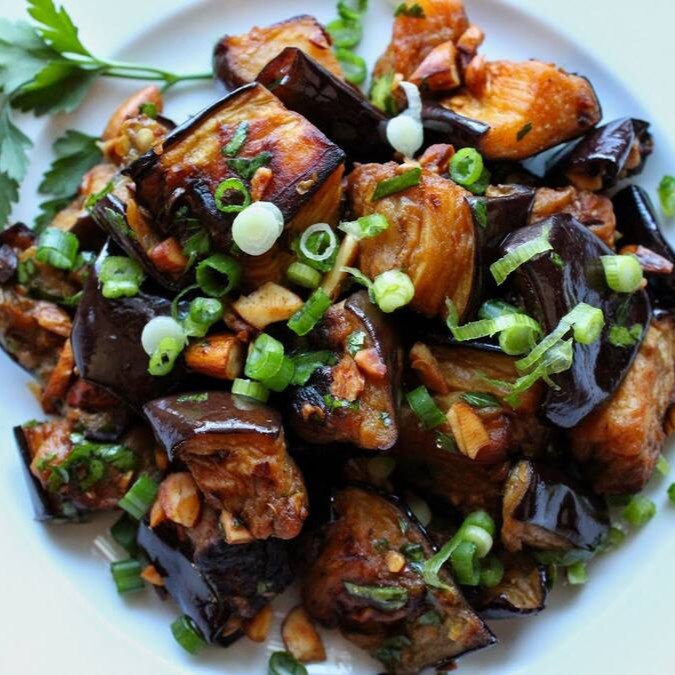 Berinjela ao molho missô com gengibre e especiarias