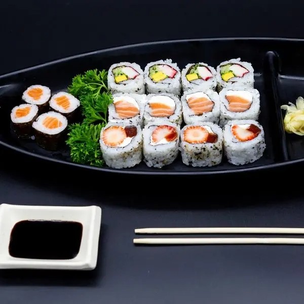 4 hossomaki de salmão 4 uramaki califórnia 4 uramaki Philadelphia 4 hossomaki romeu e julieta.