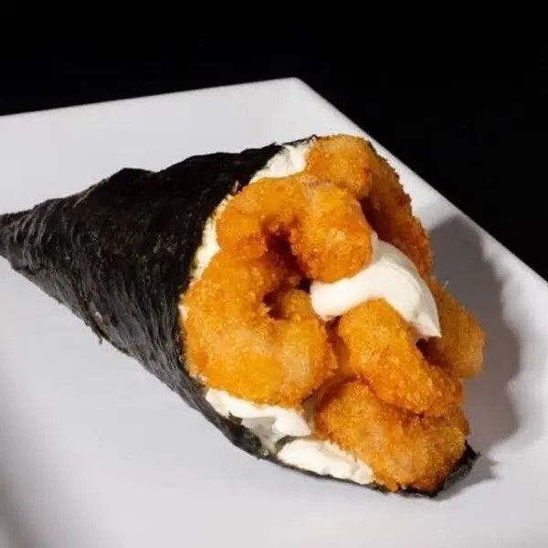 Camarão empanado, maionese, creamcheese e cebolinha.