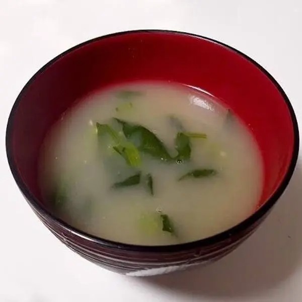Acompanha coxa de frango frito, arroz e missoshiru.