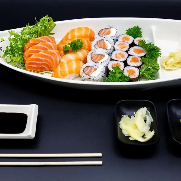 10 sashimi de salmao 8 Uramaki Philadelfia 8 Hossomaki Salmao 8 Romeu E Julieta 8 Nigiri De Salmao 8 Joe De Salmao 8 Kapamaki De Pepino 8 Uramaki Skin 4 Uramaki California