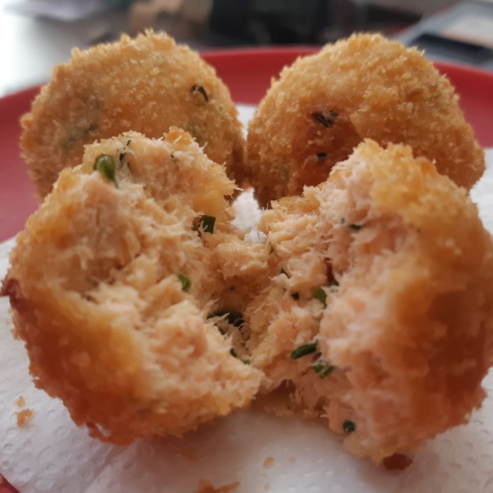 3 Bolinhos De Salmao, 7 Bolinhos De Tilapia,.3 Bolinhos De Frango. Todos Os Bolinhos São: Batido Com Cream E Cebolinha. * Favor Ler A Descrição