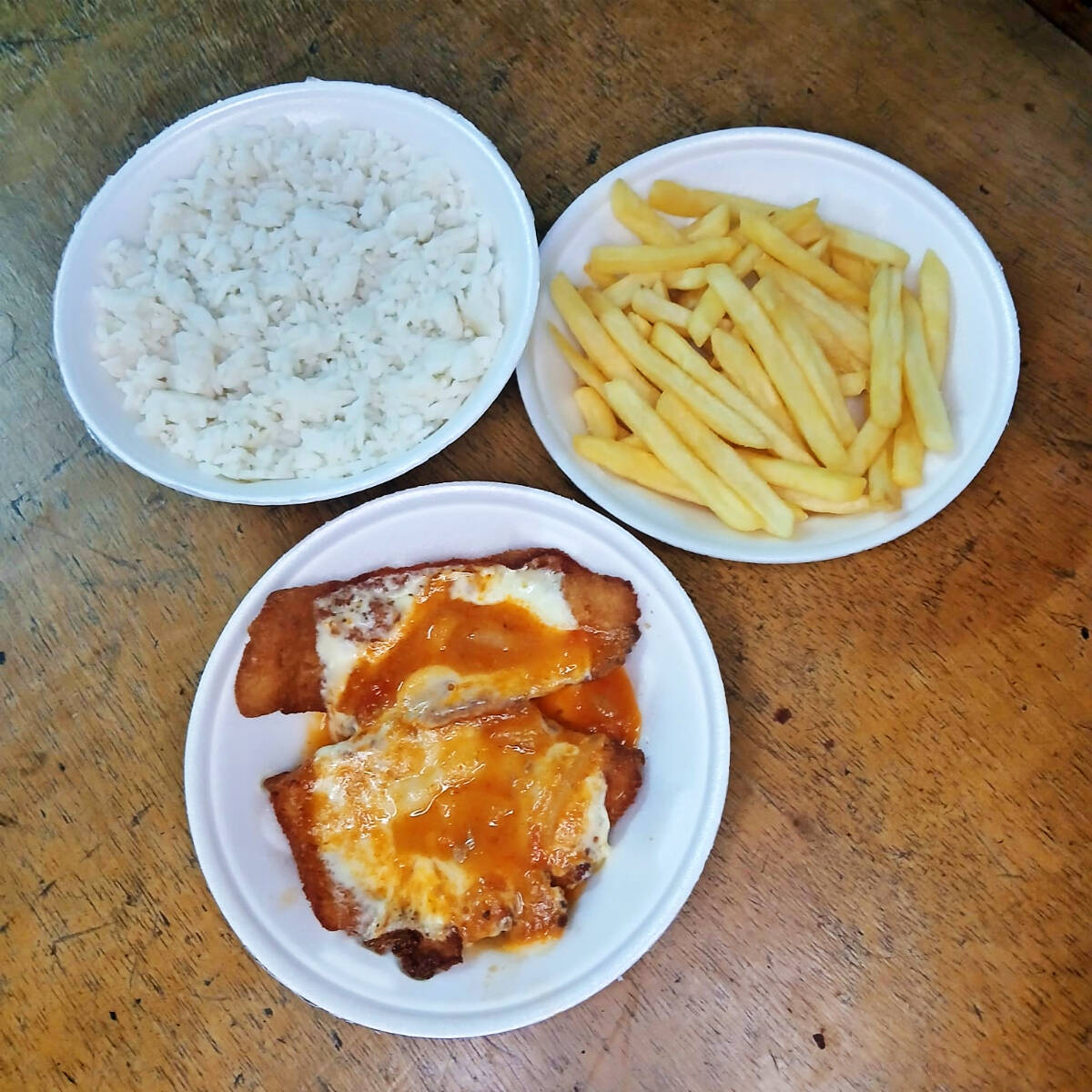 Grelhados, Milanesas, Bife a rolê e Parmegianas acompanham: Arroz + Feijão + Macarrão + Batata frita 🍛 Marmita de Strogonoff Acompanha Arroz + Strogonoff cremoso + Batata palha