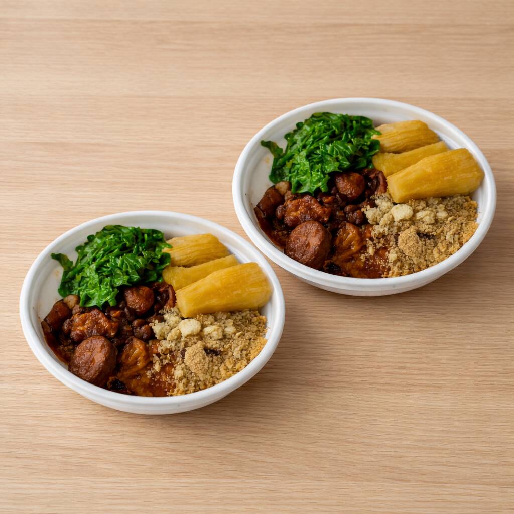 Uma Porção de feijoada + uma porção com os complementos(arroz, farofa, couve, mandioca frita)