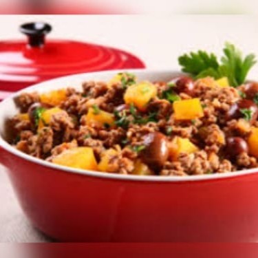 Adorável Carne moída com chuchu, um prato clássico da cozinha brasileira na categoria 'Executivos'. Acompanhada de um arroz soltinho e saboroso, oferecemos também a oportunidade de personalizar a sua refeição com mais duas opções à sua escolha. Ideal para quem aprecia uma comida caseira, repleta de sabor e nostalgia. Um deleite para o paladar que certamente fará do seu almoço um momento especial.