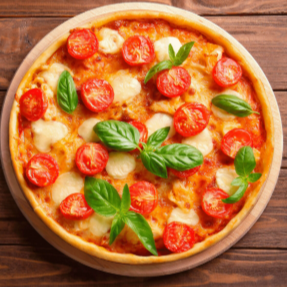 Pizza grande (8 fatias) sabor marguerita.ingredientes: molho de tomate, mussarela, tomate e manjericão fresco.