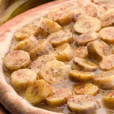Fina camada de mussarela, creme de leite, Banana, açúcar e canela.