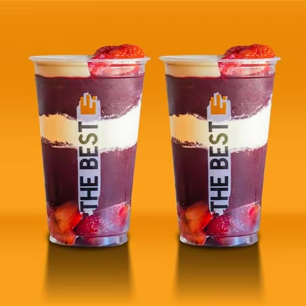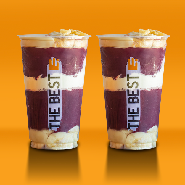 Combo médio de 2 copos de 296ml para criar como quiser! Escolha entre açaí ou sorvete e combine com diversos complementos. Feito para você montar e saborear do seu jeito!