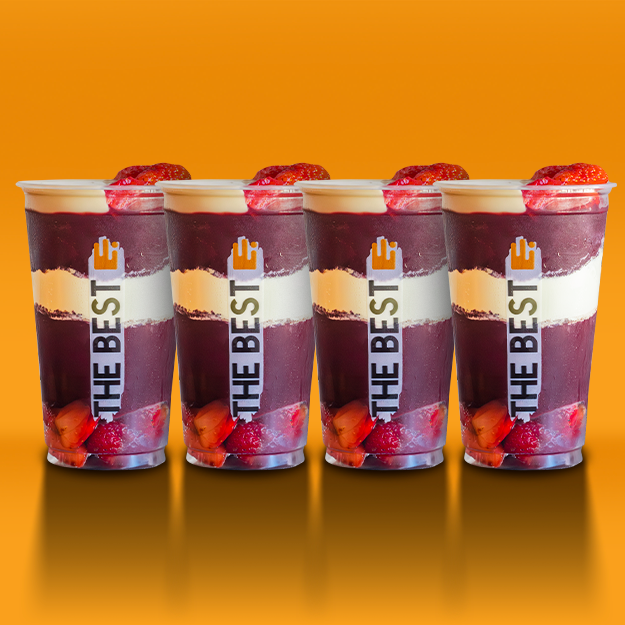 Combo Galera do Escritório: 4 copos de 296ml para montar do seu jeito! Açaí ou sorvete, com os complementos que preferir. Ideal para dividir com quem você gosta!