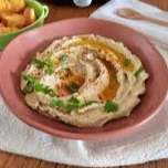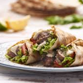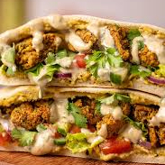 pão folha, tomate, salsinha, alface, cebola, picles e pasta de homus
