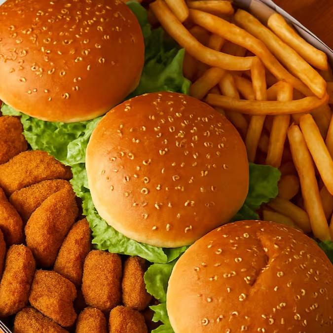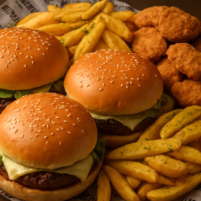 Trio 1 – 3 Salada Burgers + nuggets + batata frita.