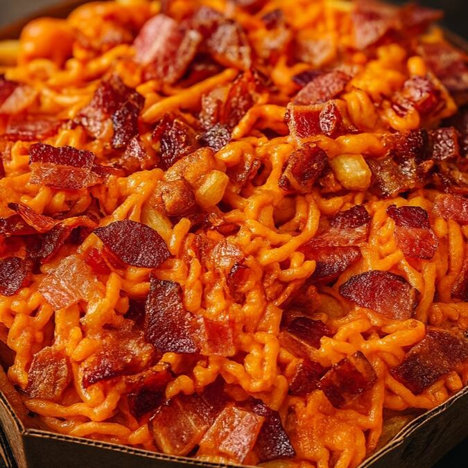 Nosso Combo Batata Cheddar Bacon traz uma combinação perfeita de batatas fritas crocantes , cobertas com uma camada generosa de cheddar cremoso derretido e finalizadas com pedacinhos de bacon dourado e crocante . Cada mordida é um equilíbrio perfeito entre crocância, cremosidade e aquele sabor irresistível de bacon.