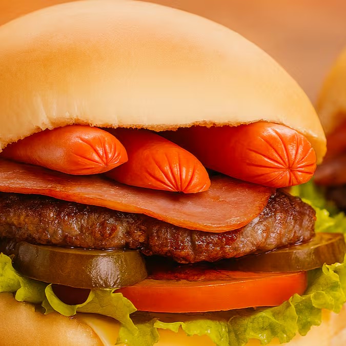 Pão, Hambúrguer Tradicional , queijo, presunto,Calabresa, Maionese, alface e tomate.