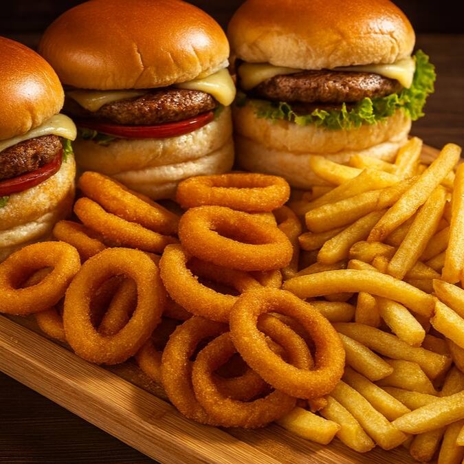 Onion Rings crocantes e douradas, adicionando uma textura única e saborosa à sua refeição.