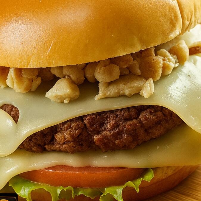 Pão com gergelim selado na manteiga, hamburguer tradicional ,queijo Mussarela, maionese artesanal, alface e tomate.