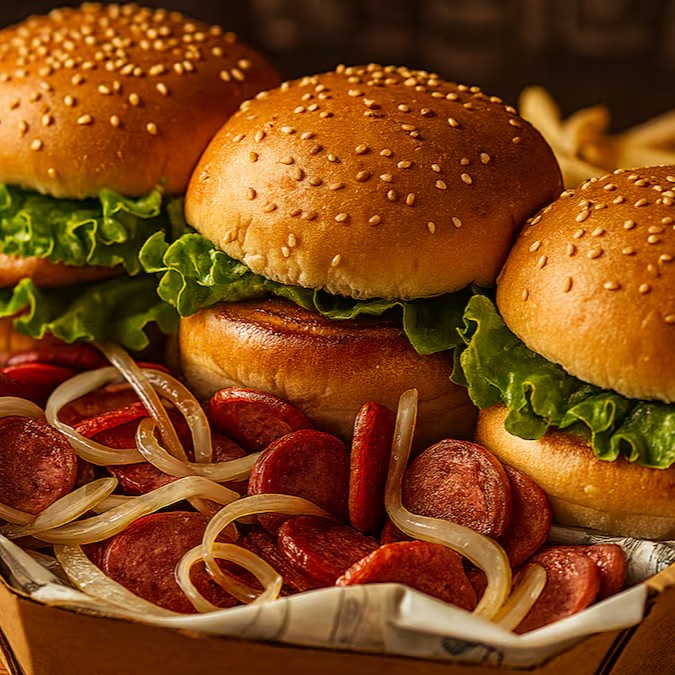 Calabresa acebolada, uma explosão de sabor defumado e picante.
