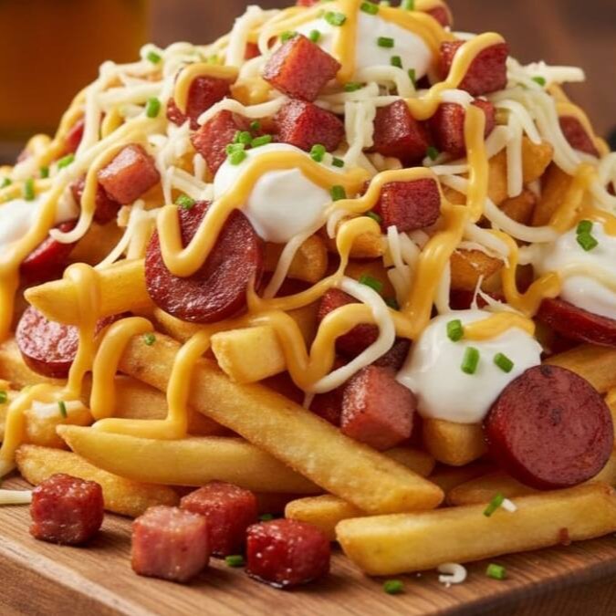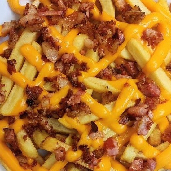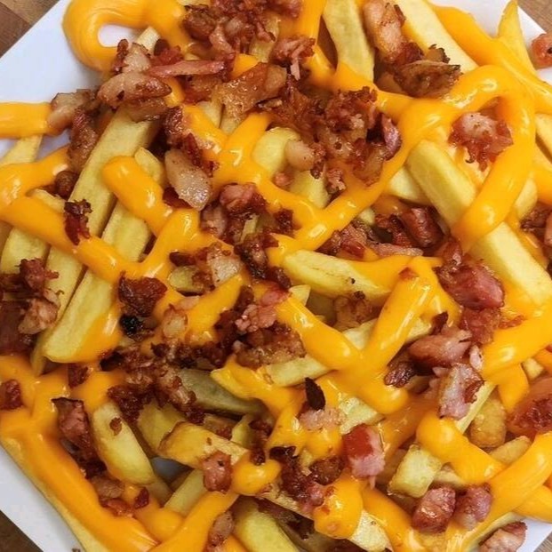 Batata frita com cheddar e bacon aprox 400g.
