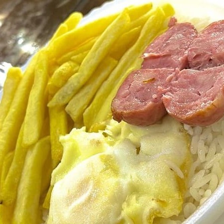 Feijão, Arroz, Batata frita, Ovo frito e Linguiça**Não Substituímos Carnes Obs : Prezados clientes ,a base da nossa marmita é composta de arroz e feijão , itens que não poderão ser retirados.