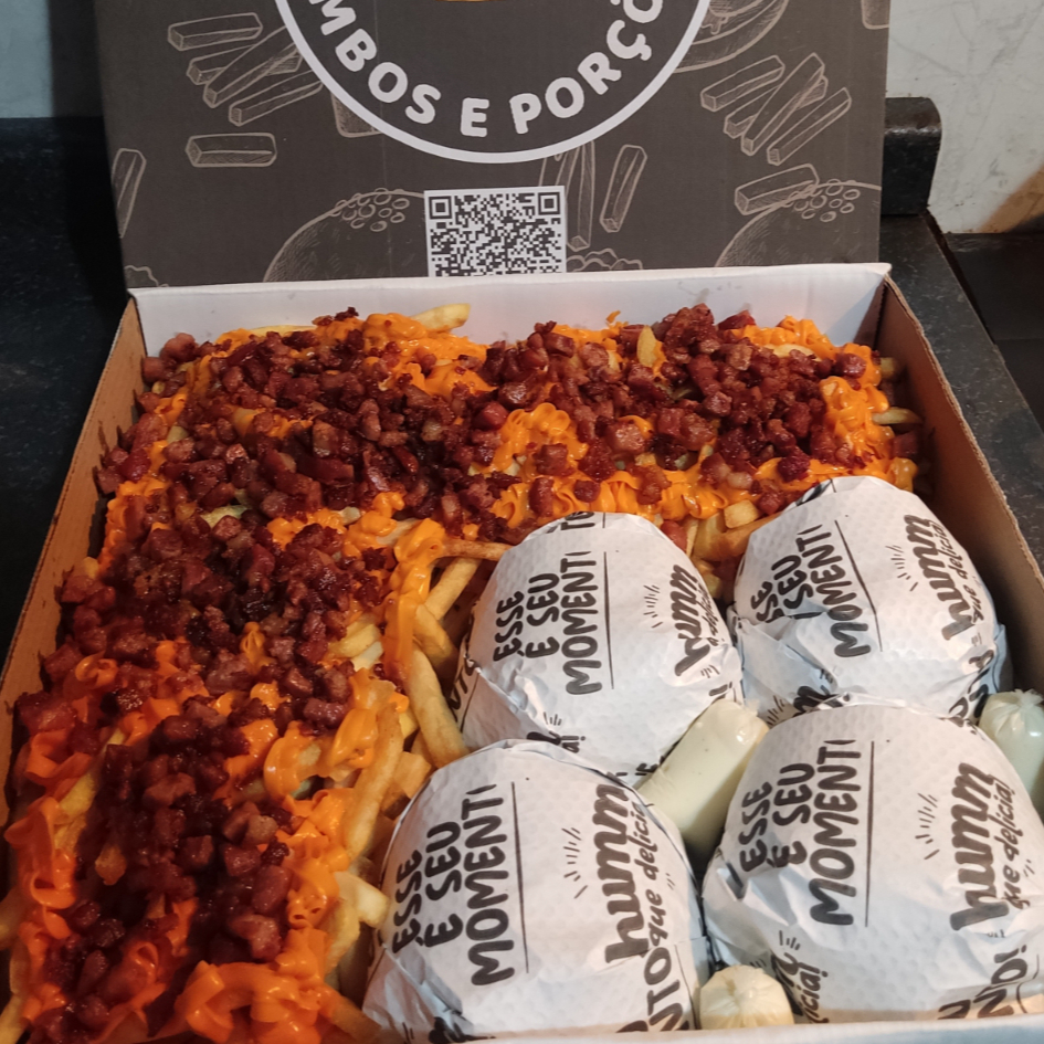 4 hambúrguer artesanal, pão brioche, queijo mussarela, queijo cheddar, bacon e maionese especial. acompanham 3 porções, sendo possível escolher entre (batata frita tradicional, batata com bacon e cheddar, calabresa, onion rings e polenta palito). Ver menos