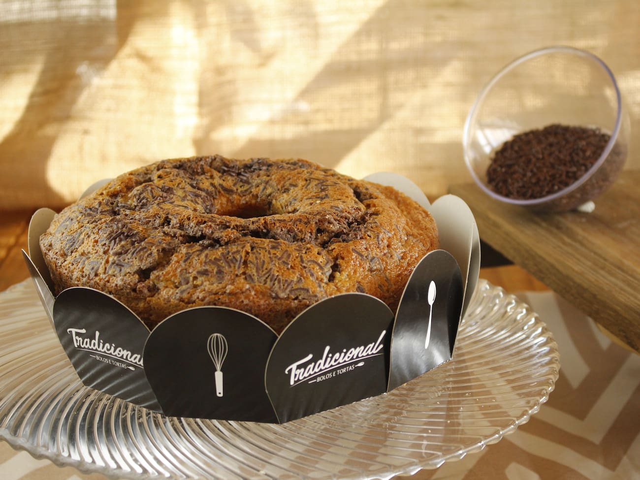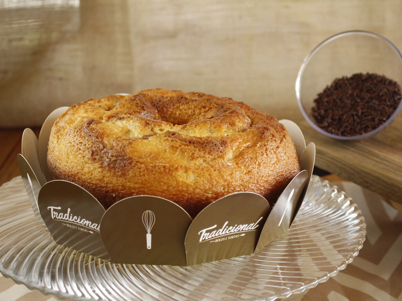A nostalgia da infância em cada fatia. Massa branca de trigo, fofinha e "salpicada" com granulados de chocolate que criam o efeito clássico. É o bolo oficial da lancheira escolar, agora com o toque artesanal da Tradicional.