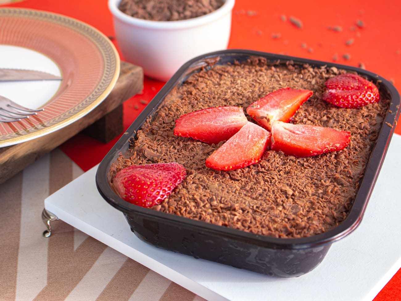 O equilíbrio perfeito entre a delicadeza e o sabor intenso da fruta. Esta sobremesa traz duas camadas de cremes aveludados — um branco cremoso e outro de chocolate nobr ao leite — que servem de base para morangos frescos e selecionados. É uma experiência sensorial c