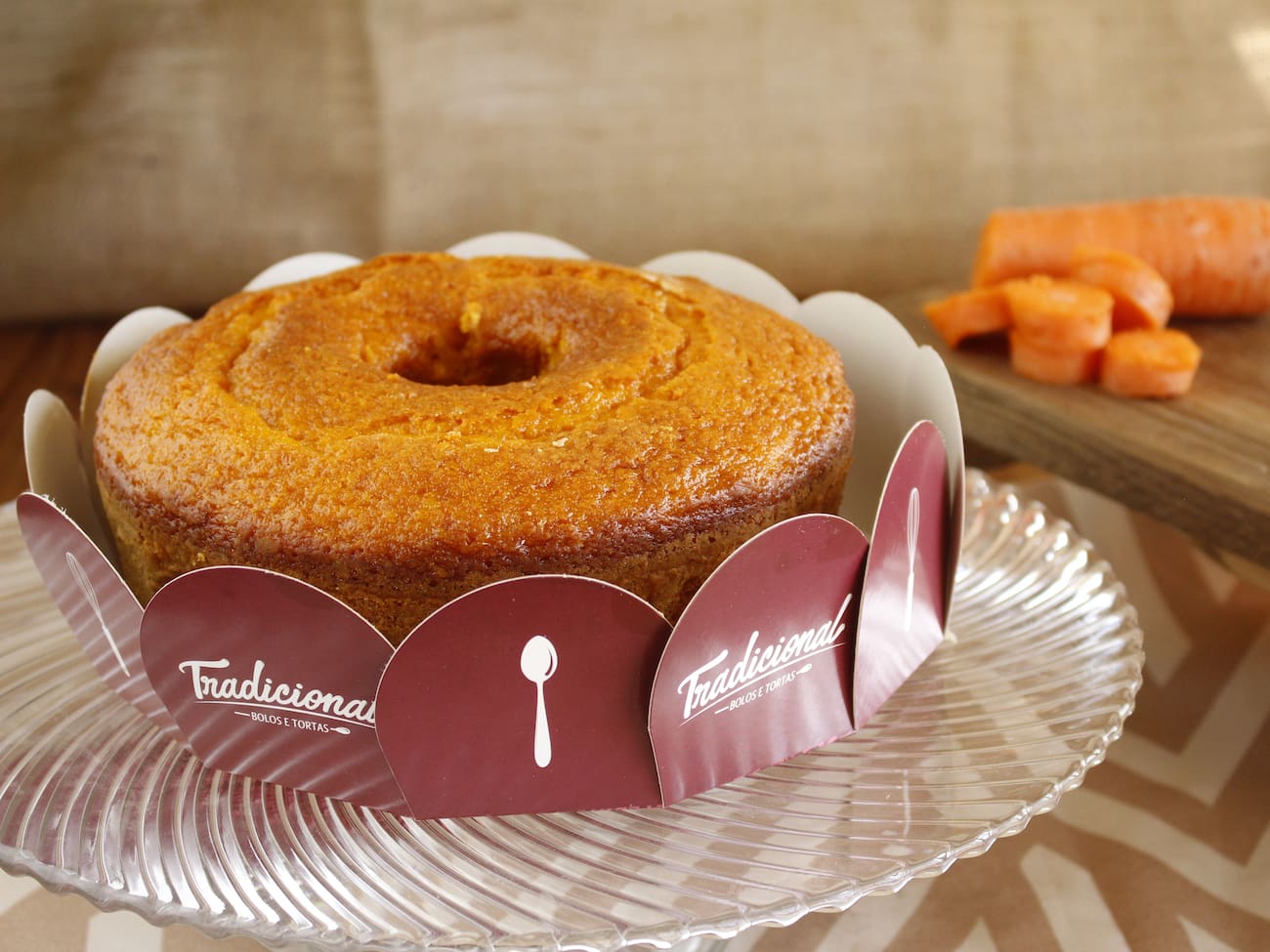 Nosso bolo de cenoura é vibrante, feito com cenouras frescas, resultando em uma massa leve e com aquela cor alaranjada que é um colírio para os olhos. Simples e fofinho.