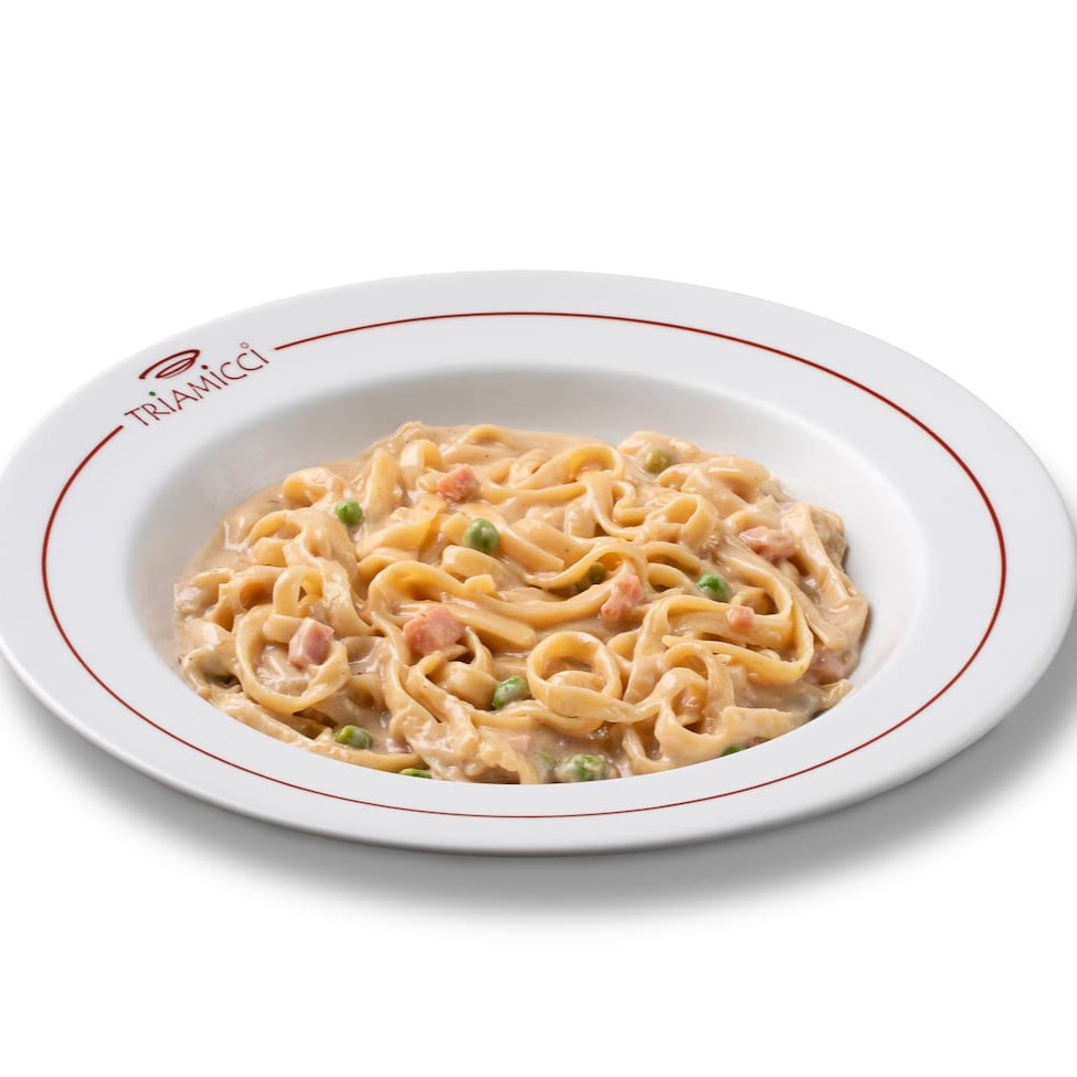 Escolha sua massa preferida. Molho: Molho branco, presunto, ervilha, champignon