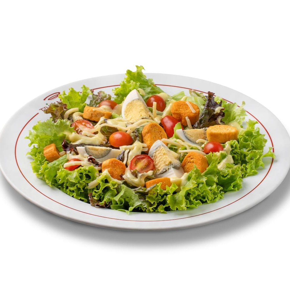 Mix de alface + tomate cereja + ovo cozido + parmesão + croutons + molho Caesar