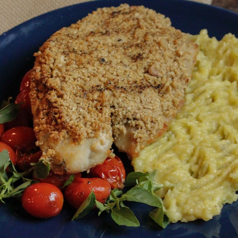 Um prato elegante e harmonioso que combina sabores delicados e texturas distintas. A tilápia, coberta por uma crosta crocante de castanhas que contrasta deliciosamente com o purê de batata-doce cremoso. Para completar, tomates confitados, com seu sabor doce e ligeiramente ácido, trazendo frescor e um toque gourmet ao conjunto. Uma refeição sofisticada, perfeita para impressionar os paladares mais exigentes.