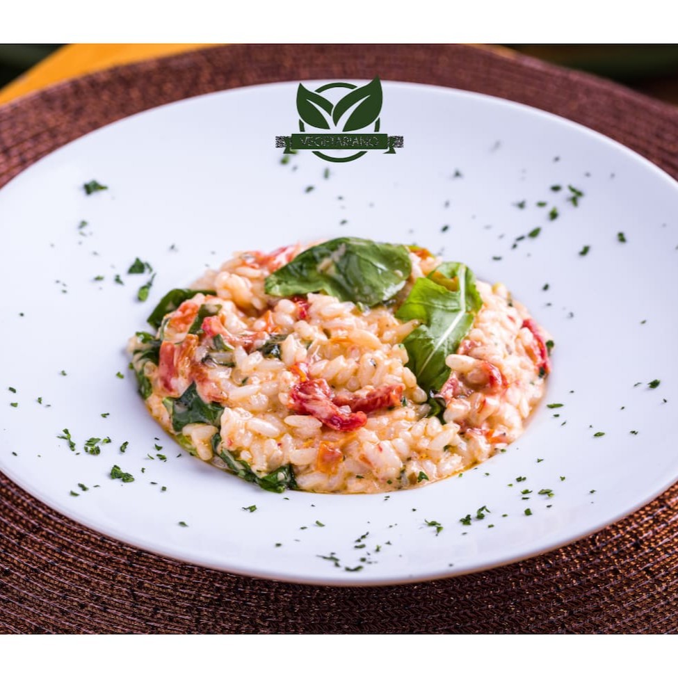 Um risoto cremoso e saboroso que combina a suavidade do arroz arbóreo com o frescor picante da rúcula e o toque adocicado e concentrado do tomate seco. Uma experiência gastronômica refinada e equilibrada.