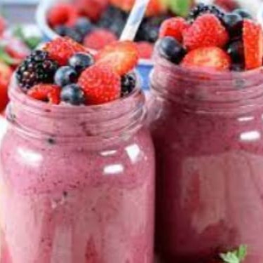 Leite, morango, framboesa, amora e mirtilo.