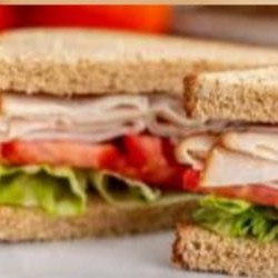 Pão integral fatiado, recheado com fatias de peito de peru, alface americana, tomates cereja e um toque cremoso de creme de cottage. Uma combinação simples e elegante.